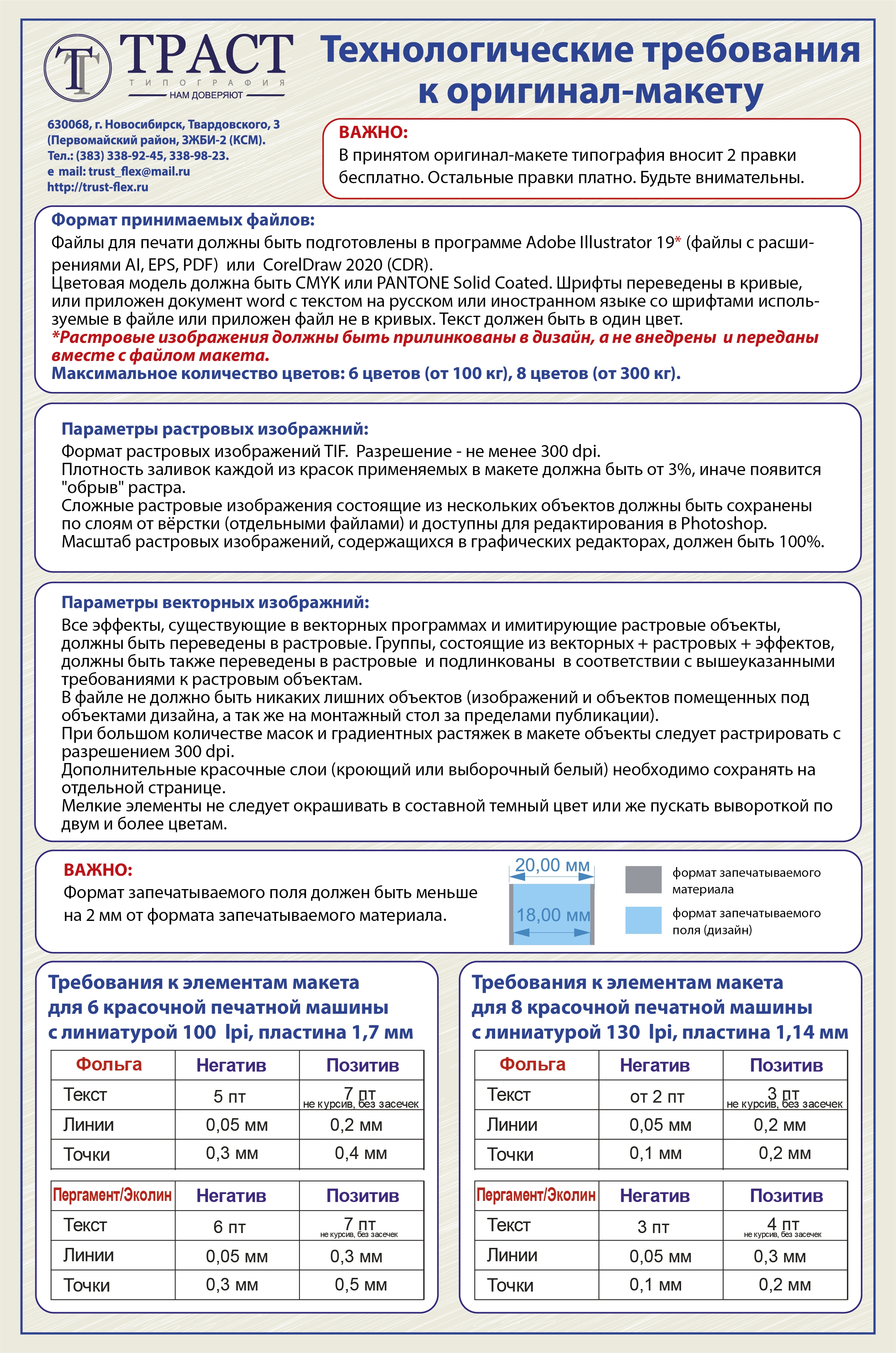 - В связи с особенностями флексопечати дополнительно к обычным требованиям следует учитывать: